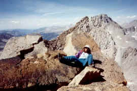 Mt. Wallace is on the Sierra crestline between Piute Pass and Bishop Pass. On day 1 we hiked from Lake Sabrina to Moonlight Lake. The second day we hiked toward Echo Lake and climbed a gully heading NW that brought us to the north face of Mt. Wallace, and then to the summit. On day three we hiked back from Moonlight Lake.